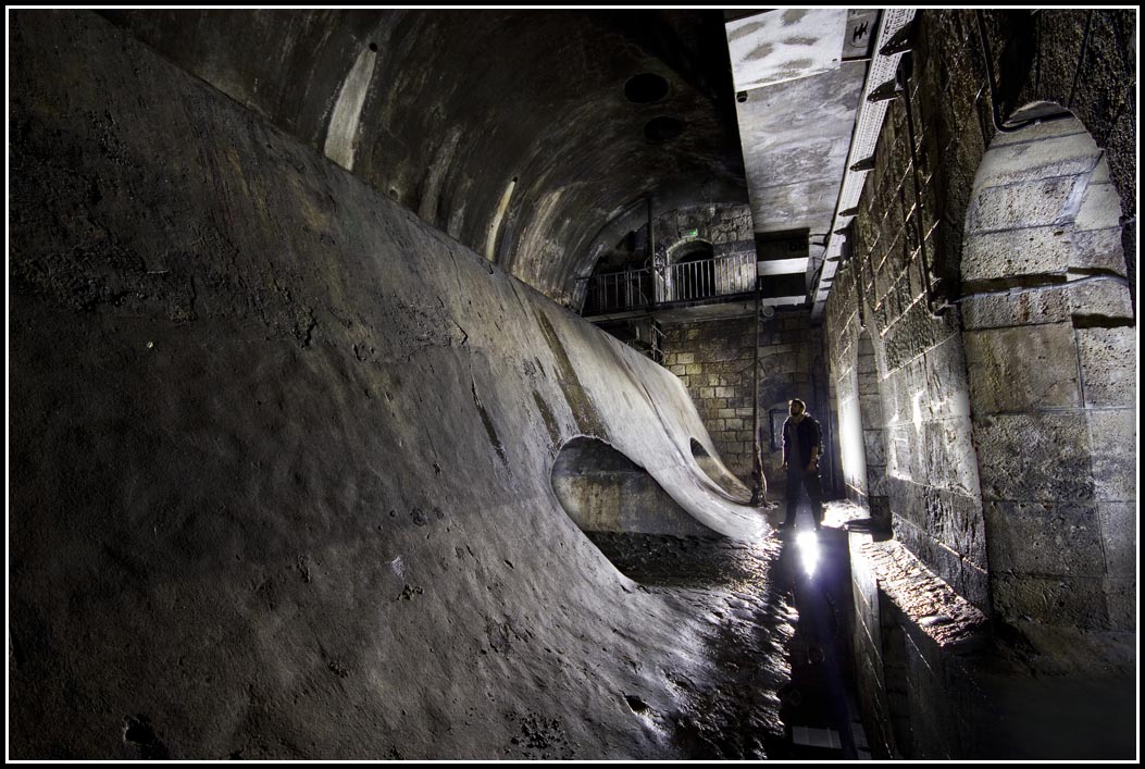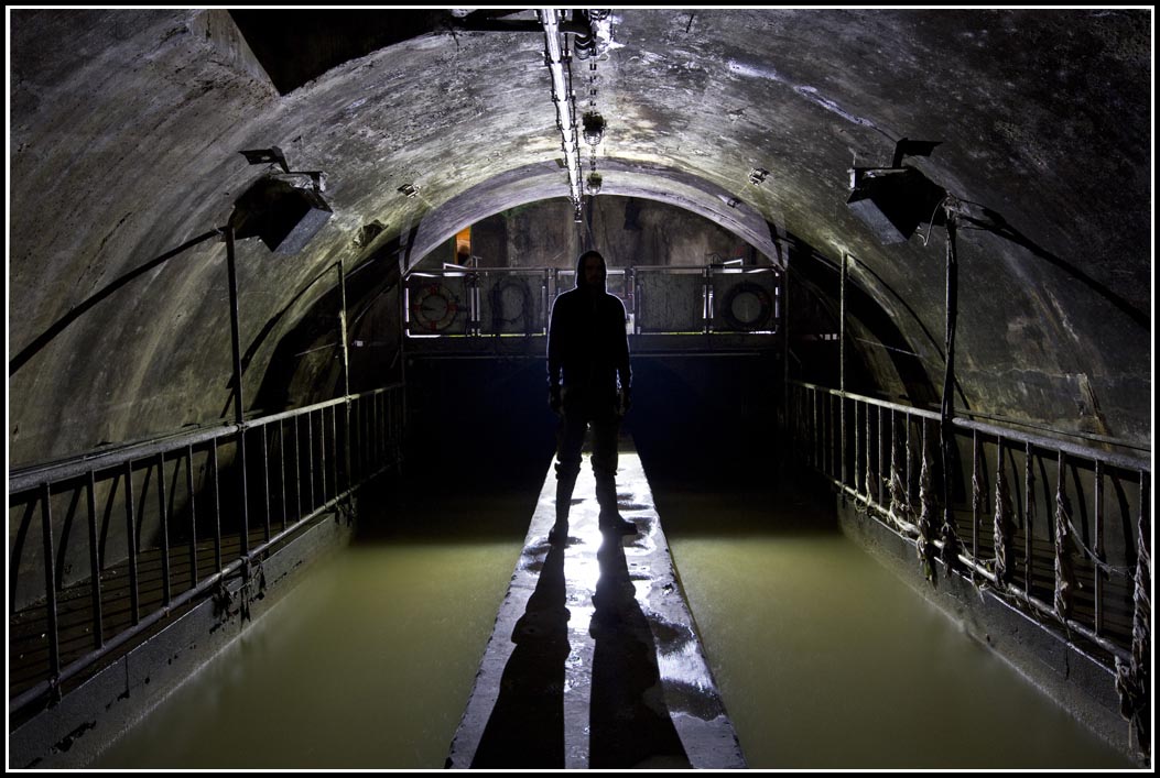 Seeing as how the power was on i felt it might be interesting to turn on the lights, yet another bad idea. The tours audio and visual light show fired up, and it was loud. The recorded guides voice boomed around the chamber as lights flickered on and off in a dazzling array of red and blue. The worst section was when it played clips from the movie Screaming, gunshots and angry german’s shouting were just some of the delights. Imagine taking a unofficial disney ride through a drain.