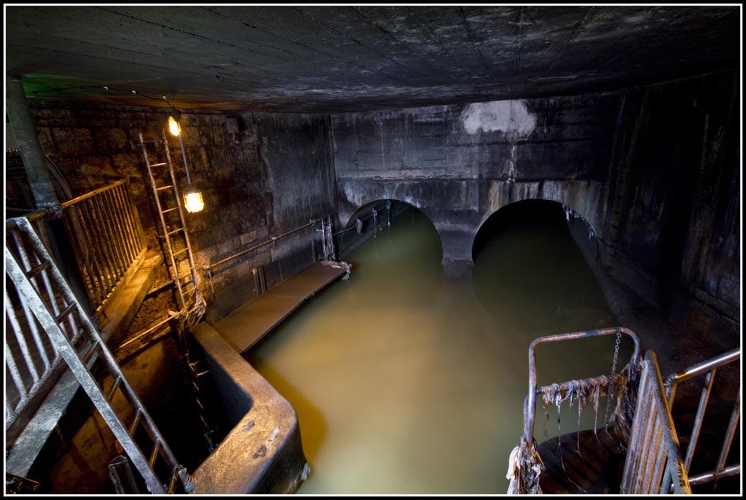 The Third Man tour consists of three chambers, two over interceptors/mainline sewers with the third being the easily recognisable overflow chamber from the film. A lot has changed in the last few years, With the construction of the new flood sewer a eddies vortex style plughole now sits tucked away in the corner of the main chamber, roughly 2.5-3m in diameter with an unknown depth. This being the reason access is now impossible from the Wein.