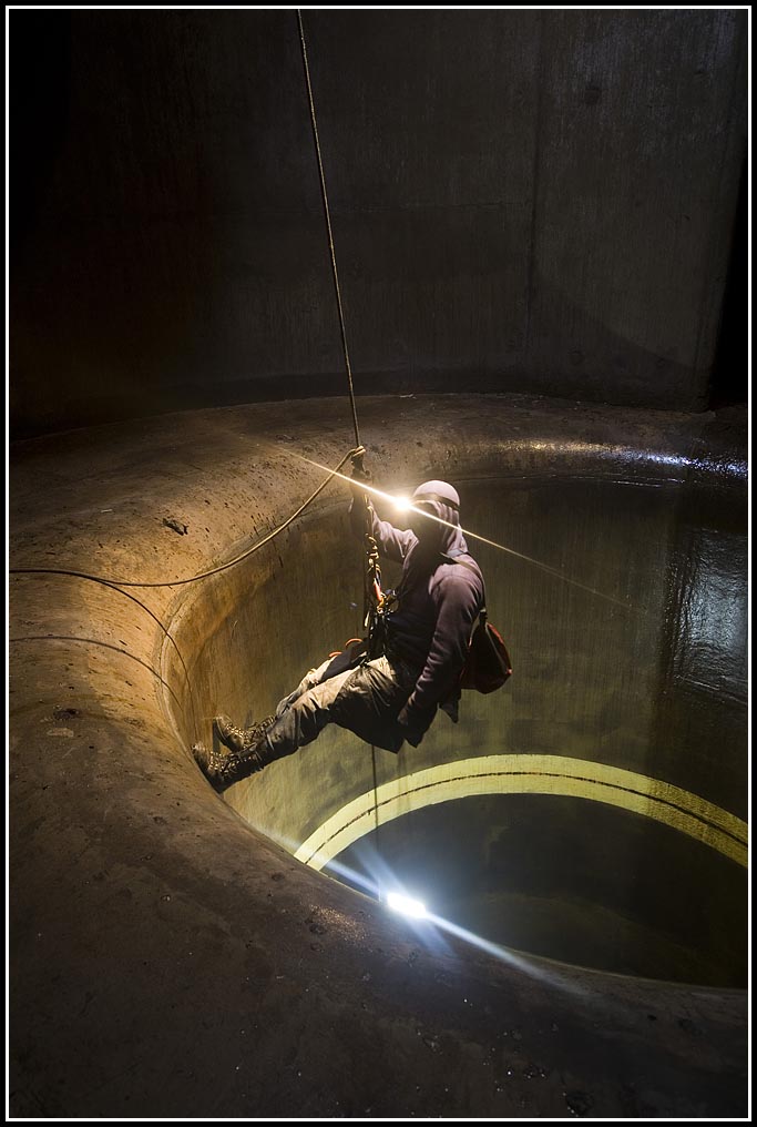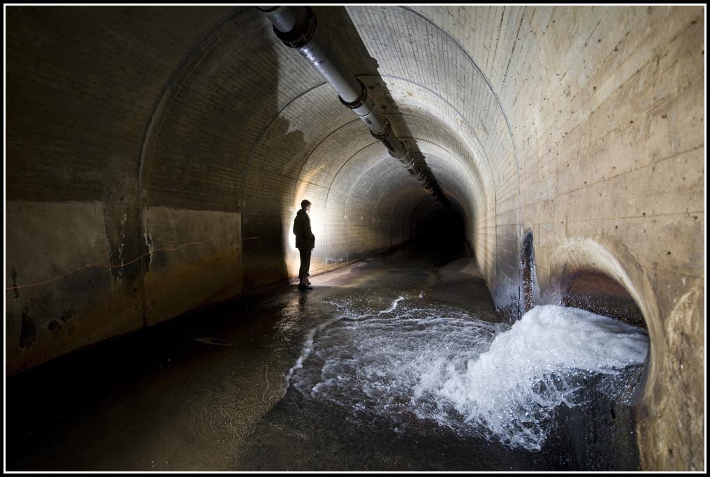 Sure enough it was worth it, after locating the outfall and decided that the brown funk on the floor was just wet concrete and not dirty sludge of death we made our way into the tunnel. Luckily as the water reserve were low there was no water coming down the vortex so the tunnel was dry apart from a slight trickle in the middle. We made our way to end end and stood under the vortex, sunlight streaming in from above. We took a couple of photos before heading back to the entrance.